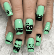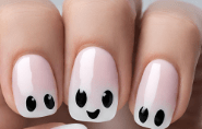 - Paint cute ghost faces with black eyes and mouths on each nail.